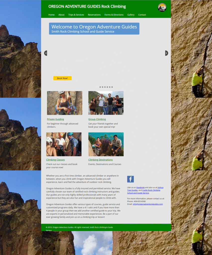 We wireframed and designed new pages for Castle Rock Climbing School in a process that included a homepage, a reservation page (Customized reservation form), multiple Service pages, and a gallery (complete with new, fully-featured).