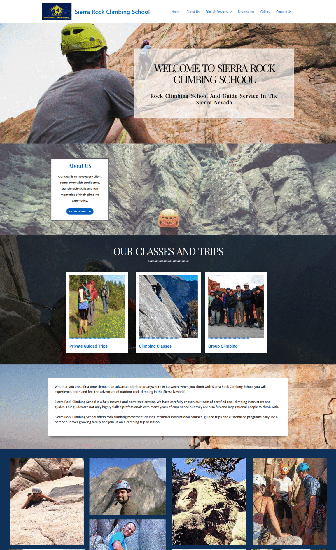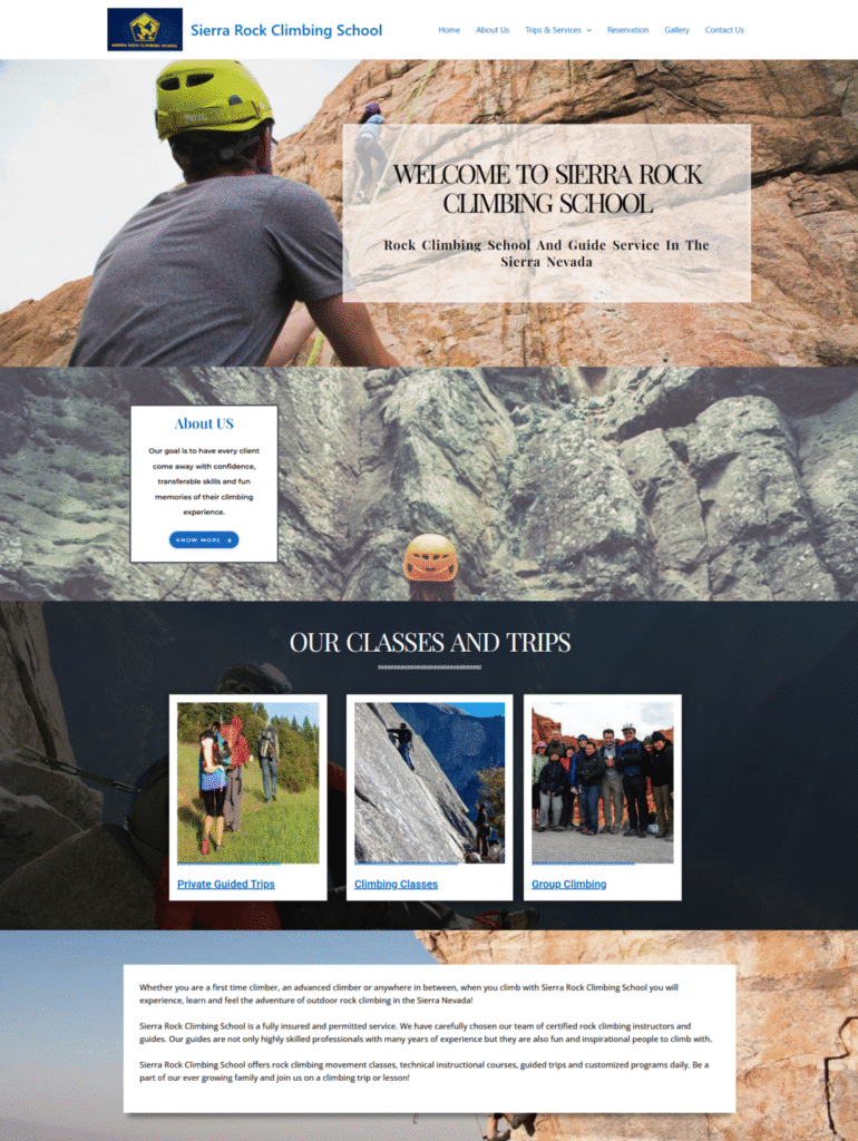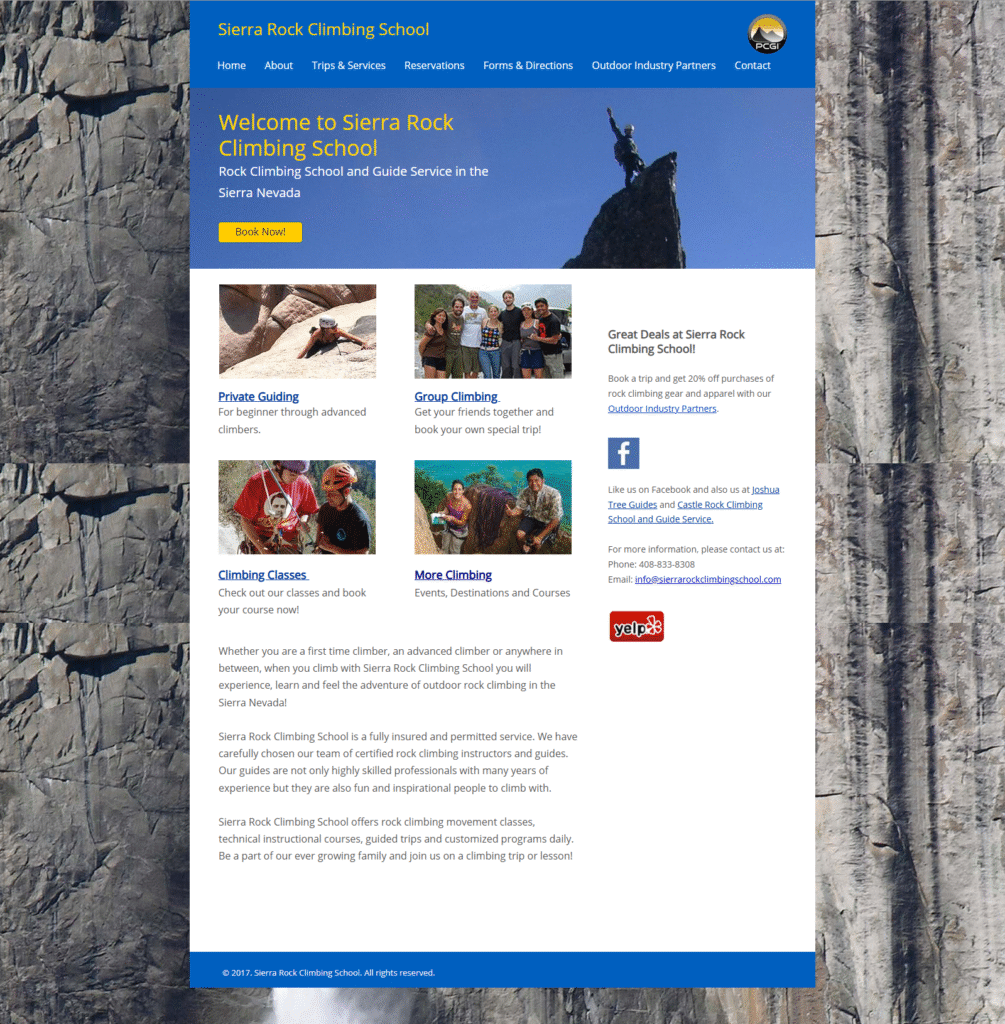 We wireframed and designed new pages for Castle Rock Climbing School in a process that included a homepage, a reservation page (Customized reservation form), multiple Service pages, and a gallery (complete with new, fully-featured).